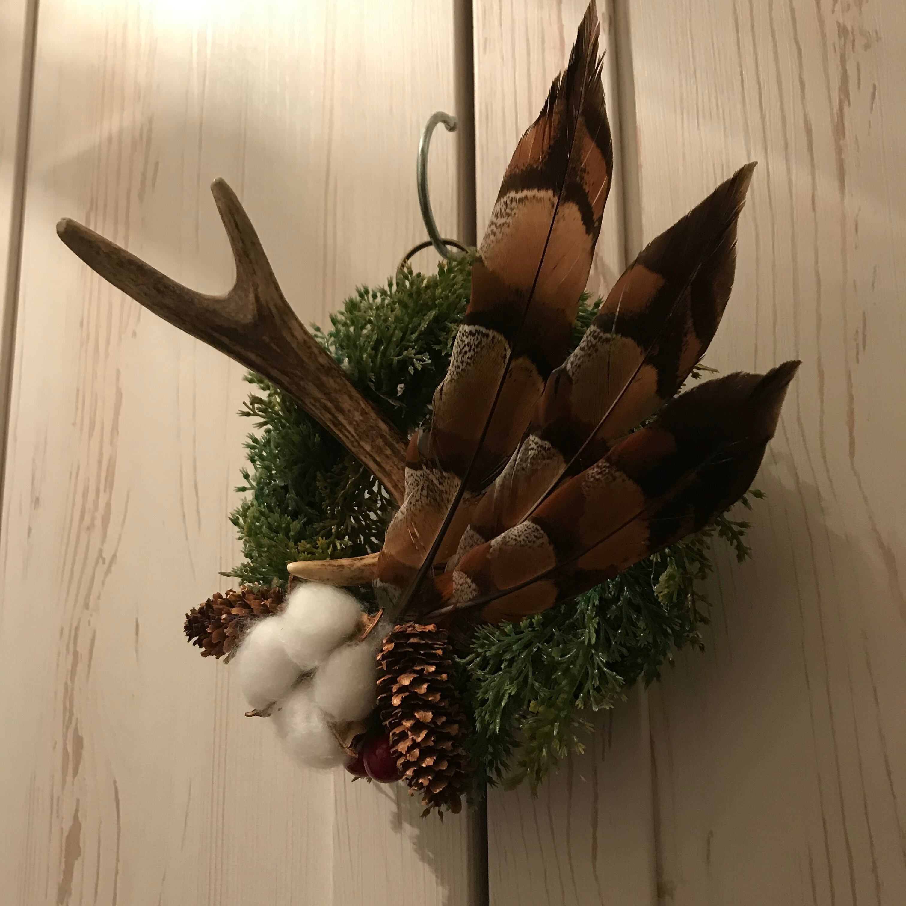 ※リースの角と羽以外の素材は造花が使われておりますが、角と羽は天然の素材のため、ご理解のある方のご購入をお願いいたします。