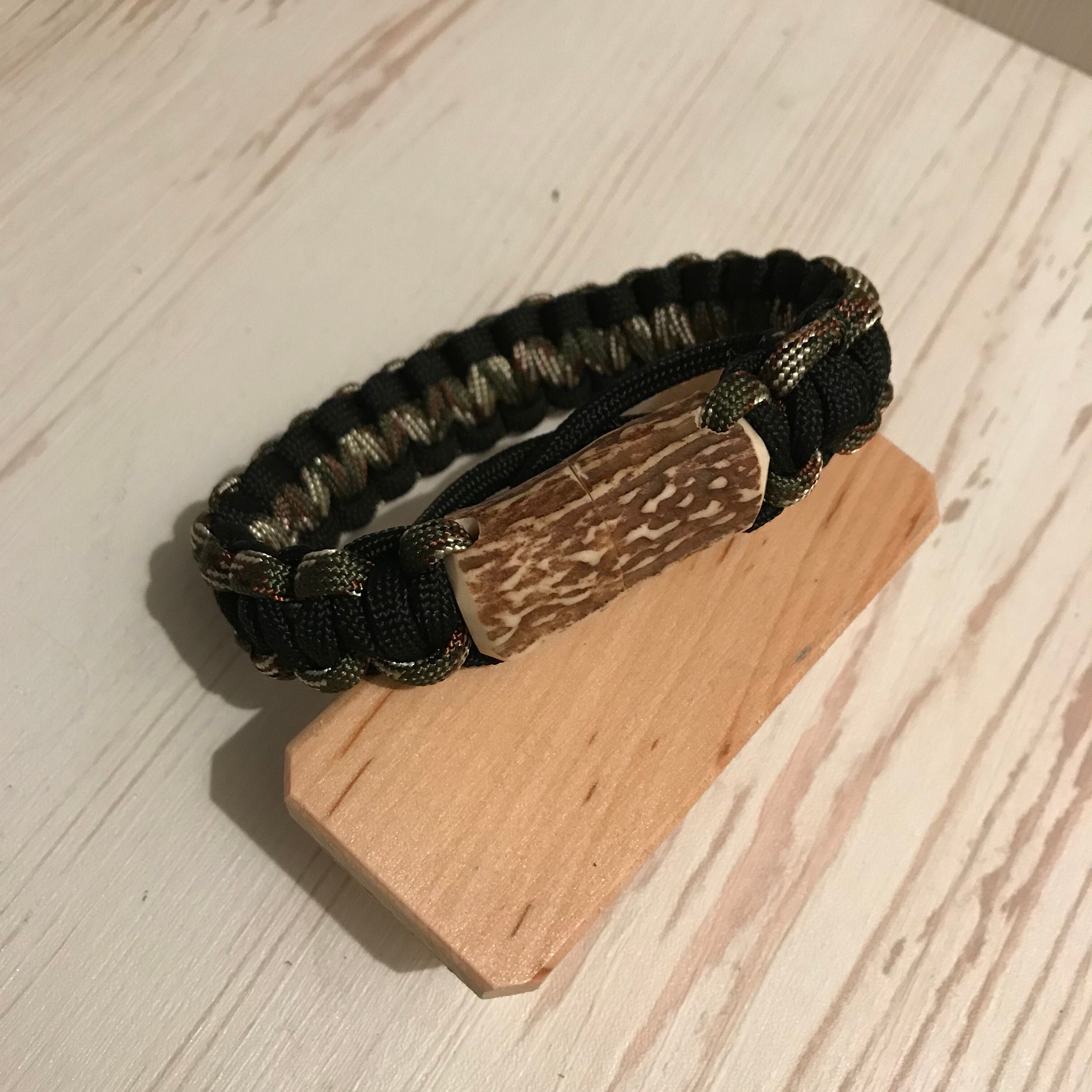 鹿の角パラコードブレスレット(黒×緑迷彩)