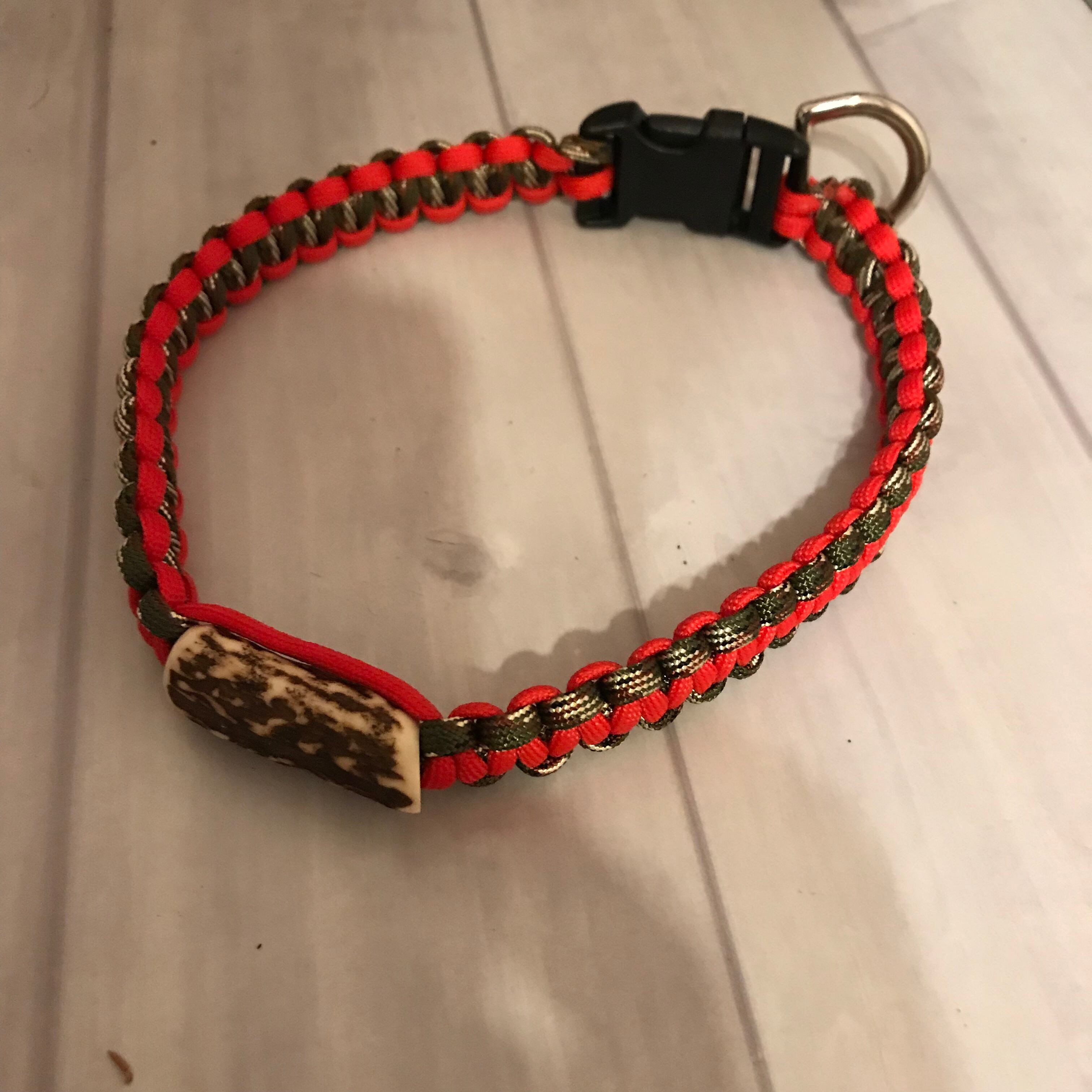 鹿の角をワンポイントにいれたパラコードの首輪です!犬用のバックル、金具を使用しております。