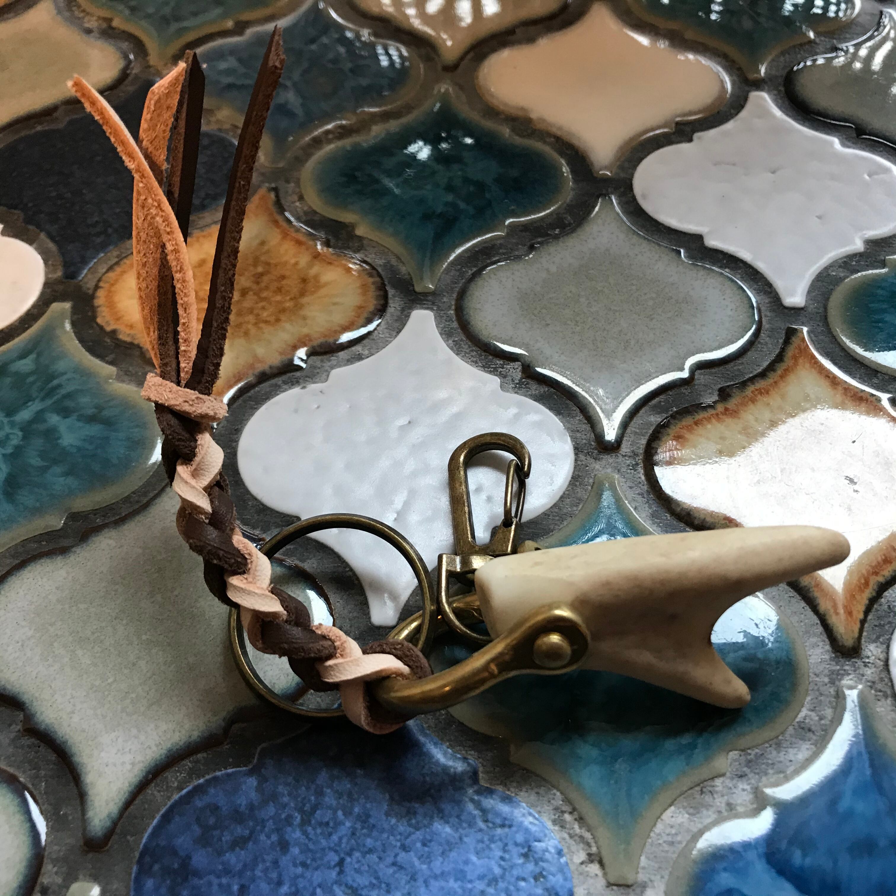 馬蹄型のシャックルにジャストフィットした鹿の角の先っちょのKEYリングです。