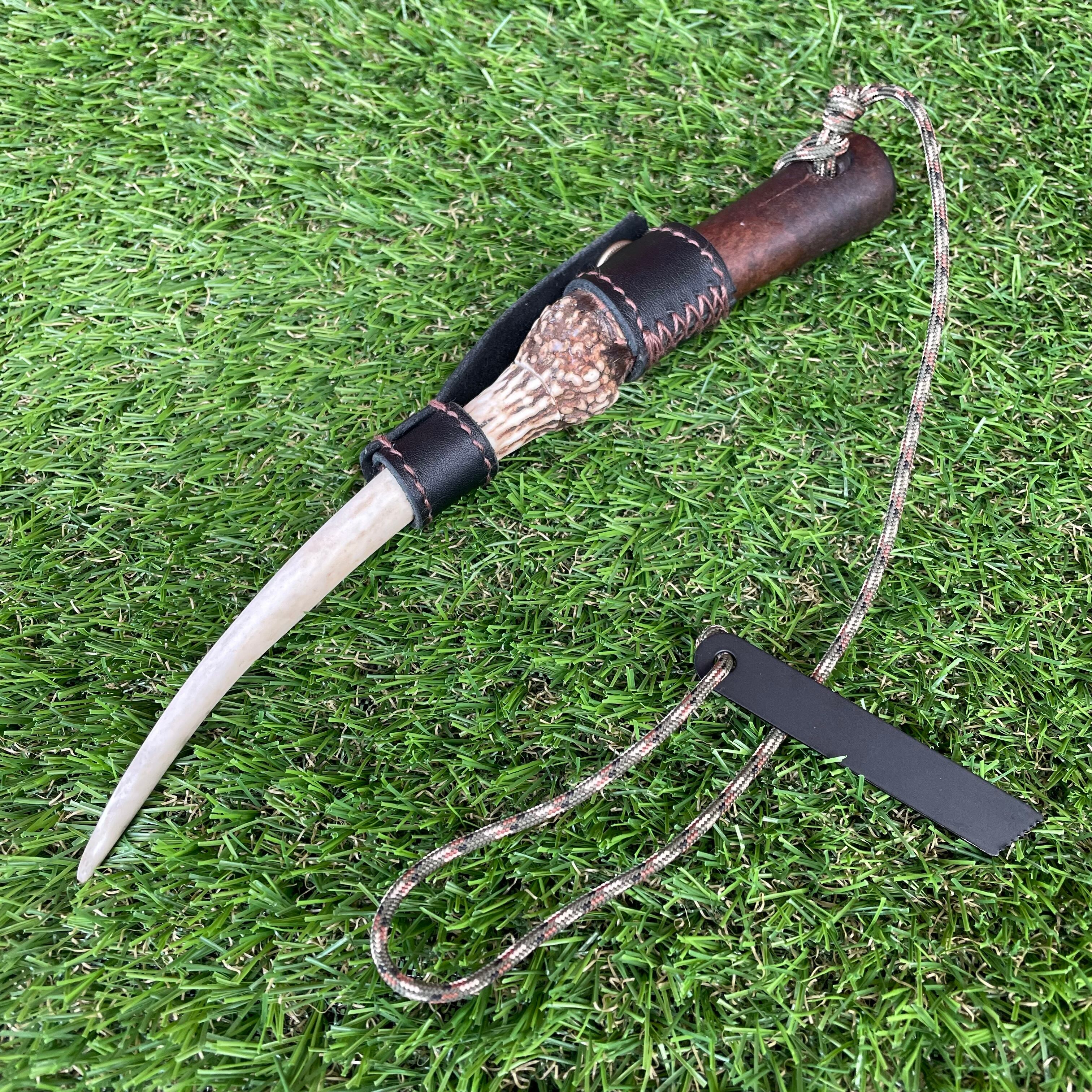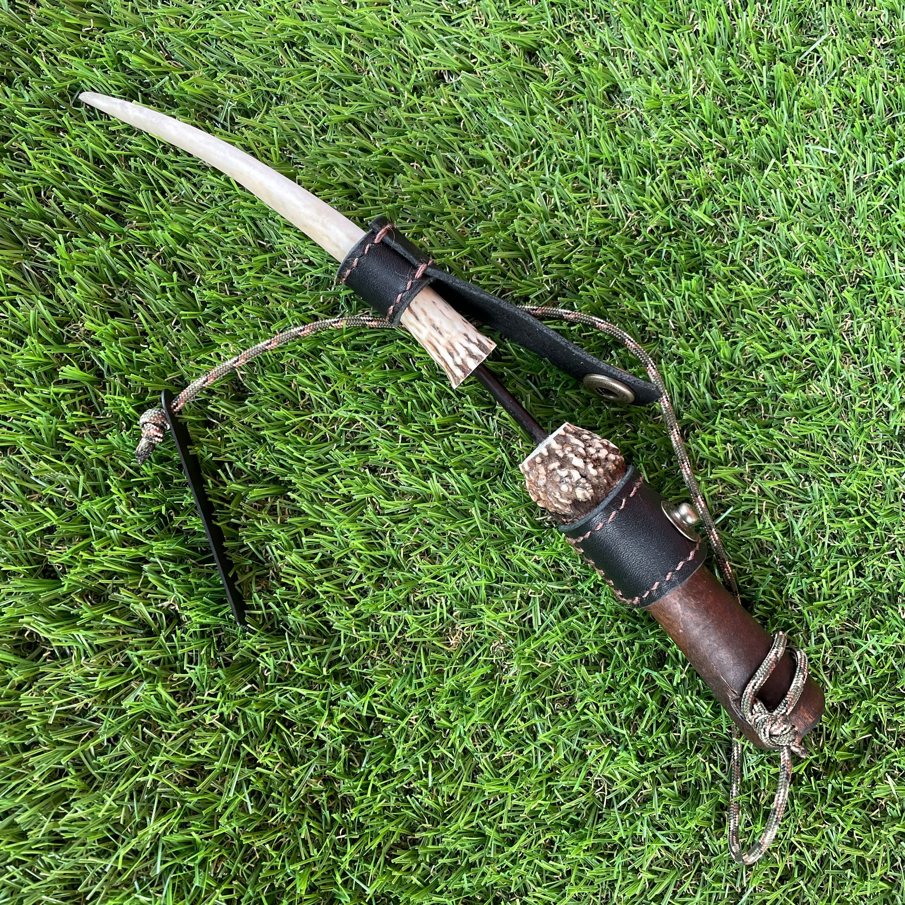 一鹿の一本角のツバと鞘で制作されたファイアースターターです。