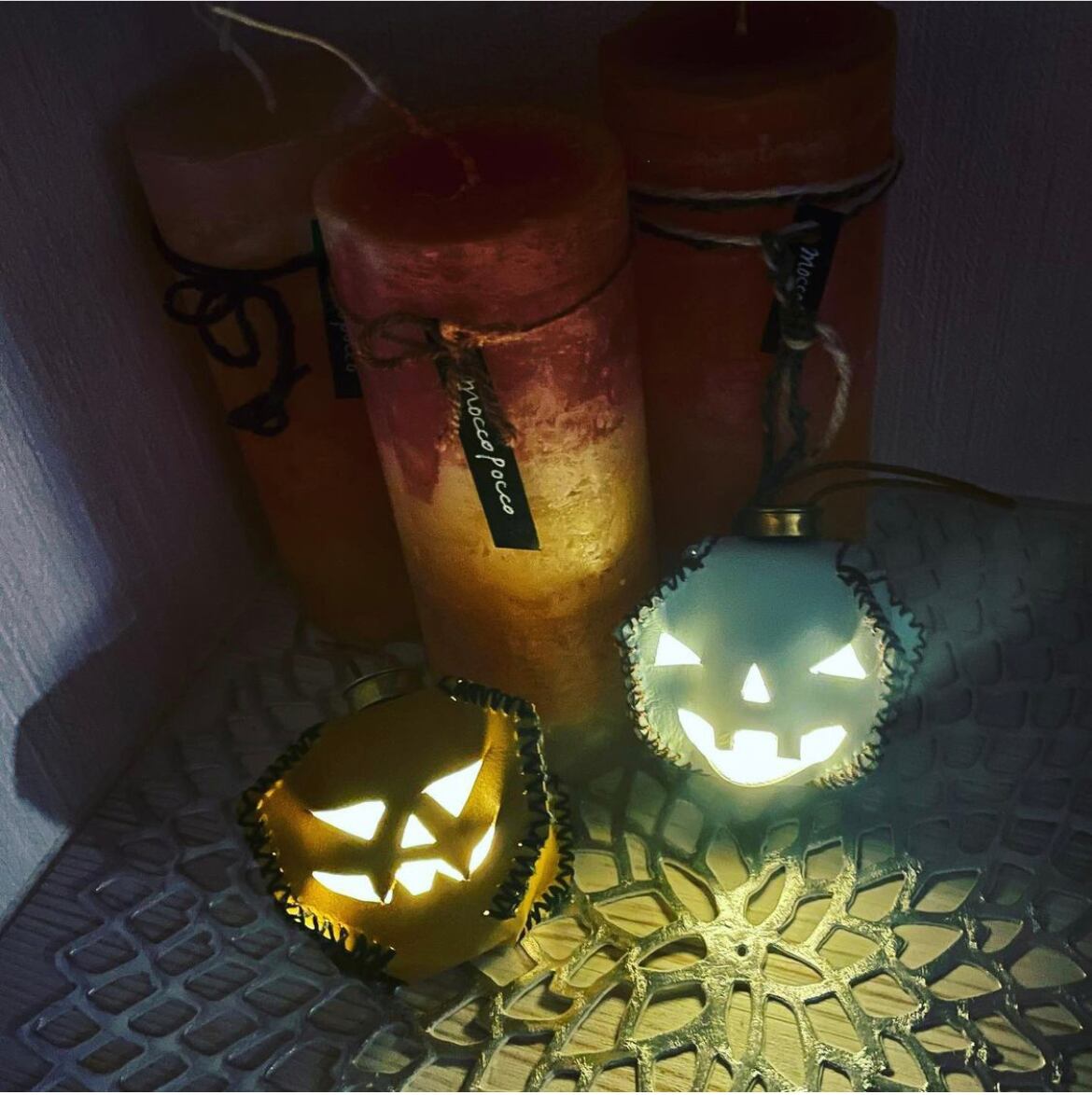 レザーで作られたジャックオーランタンのペアセットになります。