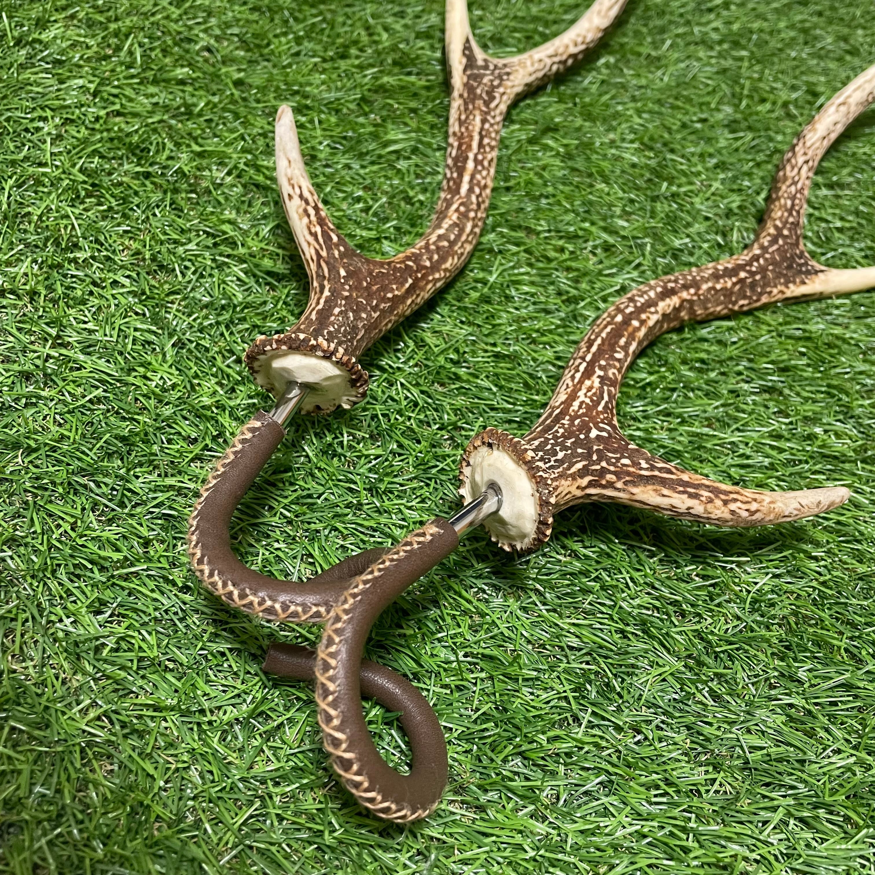 Mサイズの2又3尖の鹿の角を根元から先っぽまで丸々使ったランタンハンガーとなります。